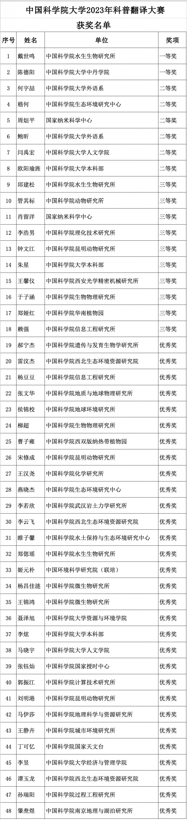 为深入学习贯彻习近平总书记关于科学普及和科学素质建设的重要指示批示精神,培养学生从事科普工作的热情,提升学生吸纳、传播国际先进科研成果的能力,中国科学院大学于2023年6月至9月举办2023年科普翻译大赛。